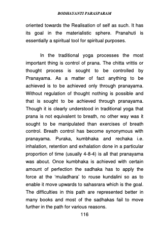 oriented towards the Realisation of self as such. It has its goal in the materialistic sphere. Pranahuti is essentially a spiritual tool for spiritual purposes.