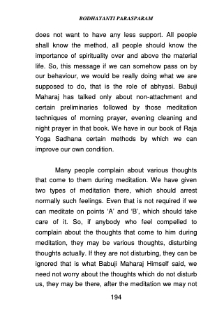 does not want to have any less support. All people shall know the method, all people should know the importance of spirituality over and above the material life. So, this message if we can somehow pass on by our behaviour, we would be really doing what we are supposed to do, that is the role of abhyasi. Babuji Maharaj has talked only about non-attachment and certain preliminaries followed by those meditation techniques of morning prayer, evening cleaning and night prayer in that book. We have in our book of Raja Yoga Sadhana certain methods by which we can improve our own condition.