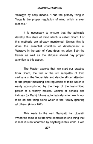 Vairagya by easy means. “Thus the primary thing in Yoga is the proper regulation of mind which is ever restless.”