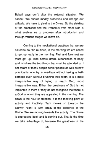 Babuji says don't alter the external situation. We cannot. We should modify ourselves and change our attitude. We have to yield to the Divine. So the yielding of the practicant and the Pranahuti from other side is what enables us to progress after introduction and through various stages we move on.