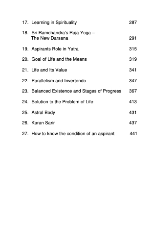 19. AspirantsRoleinYatra 315 20. GoalofLifeandtheMeans 319 21. LifeandItsValue 341 22. ParallelismandInvertendo 347 23. BalancedExistenceandStagesofProgress 367 24. SolutiontotheProblemofLife 413 25. AstralBody 431 26. KaranSarir 437 27. Howtoknowtheconditionofanaspirant 441