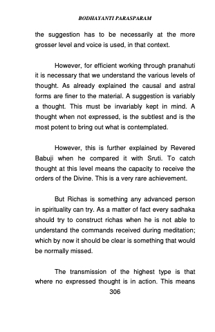 However, for efficient working through pranahuti it is necessary that we understand the various levels of thought. As already explained the causal and astral forms are finer to the material. A suggestion is variably a thought. This must be invariably kept in mind. A thought when not expressed, is the subtlest and is the most potent to bring out what is contemplated.