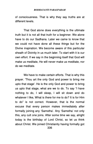 We have to make certain efforts. That is why this prayer. 'Thou art the only God and power to bring me upto that stage'. He is the only God and power to bring us upto that stage, what are we to do. To say “I have nothing to do, I will sleep, I will sit down and do whatever I like, What is there for me to do? It is for Him to do” is not correct. However, that is the normal excuse that every person makes immediately after formally joining any ‘Samstha’. Any ‘Samstha’ not only this, any cult one joins. After some time we say, alright today is the birthday of Lord Christ, so let us think