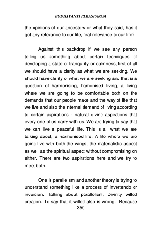 Against this backdrop if we see any person telling us something about certain techniques of developing a state of tranquility or calmness, first of all we should have a clarity as what we are seeking. We should have clarity of what we are seeking and that is a question of harmonising, hamonised living, a living where we are going to be comfortable both on the demands that our people make and the way of life that we live and also the internal demand of living according to certain aspirations - natural divine aspirations that every one of us carry with us. We are trying to say that we can live a peaceful life. This is all what we are talking about, a harmonised life. A life where we are going live with both the wings, the materialistic aspect as well as the spiritual aspect without compromising on either. There are two aspirations here and we try to meet both.