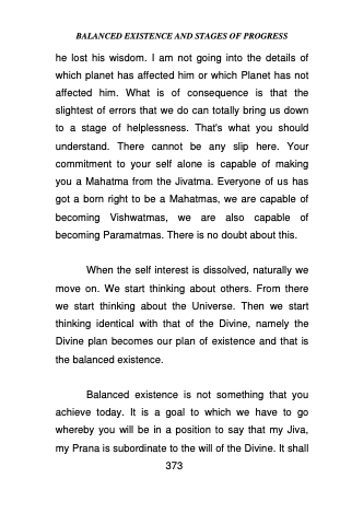 Balanced existence is not something that you achieve today. It is a goal to which we have to go whereby you will be in a position to say that my Jiva, my Prana is subordinate to the will of the Divine. It shall