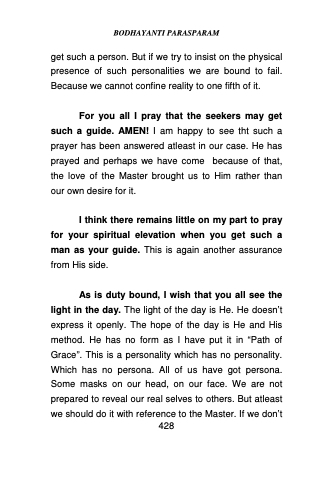 As is duty bound, I wish that you all see the light in the day. The light of the day is He. He doesn’t express it openly. The hope of the day is He and His method. He has no form as I have put it in “Path of Grace”. This is a personality which has no personality. Which has no persona. All of us have got persona. Some masks on our head, on our face. We are not prepared to reveal our real selves to others. But atleast
