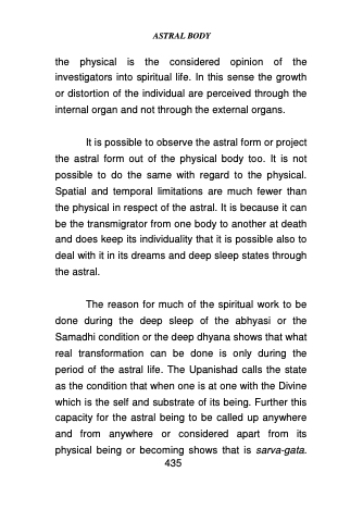 It is possible to observe the astral form or project the astral form out of the physical body too. It is not possible to do the same with regard to the physical. Spatial and temporal limitations are much fewer than the physical in respect of the astral. It is because it can be the transmigrator from one body to another at death and does keep its individuality that it is possible also to deal with it in its dreams and deep sleep states through the astral.