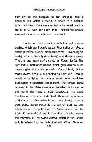 pain or feel the pressure in our forehead, this is because our vision is trying to locate to a position which is in front of our eyes as that is the usual practice for all of us with our open eyes. Instead we should always locate our attention into our heart.