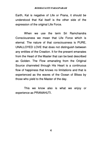 When we use the term Sri Ramchandra Consciousness we mean that Life Force which is eternal. The nature of that consciousness is PURE, UNALLOYED LOVE that does not distinguish between any entities of the Creation. It for the present emanates from the Heart of the Master that can be best described as Golden. The Flow emanating from the Original Source channeled through His Heart is a continuous flow of happiness that knows no limitations and that is experienced as the waves of the Ocean of Blisss by those who yield to the Master of the day.