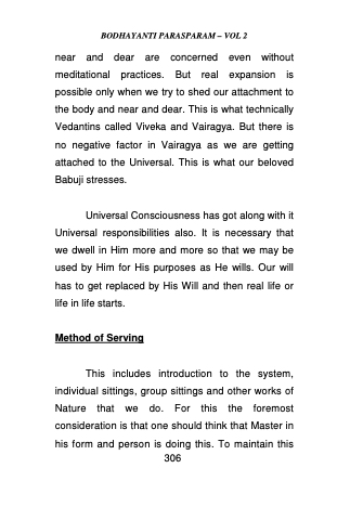 Universal Consciousness has got along with it Universal responsibilities also. It is necessary that we dwell in Him more and more so that we may be used by Him for His purposes as He wills. Our will has to get replaced by His Will and then real life or life in life starts.