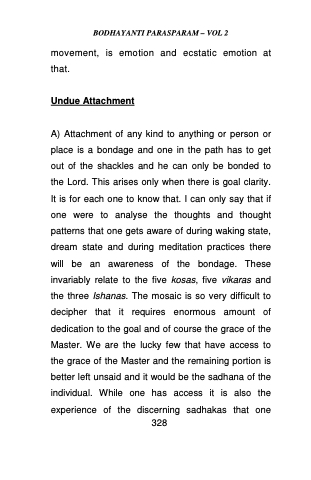 A) Attachment of any kind to anything or person or place is a bondage and one in the path has to get out of the shackles and he can only be bonded to the Lord. This arises only when there is goal clarity. It is for each one to know that. I can only say that if one were to analyse the thoughts and thought patterns that one gets aware of during waking state, dream state and during meditation practices there will be an awareness of the bondage. These invariably relate to the five kosas, five vikaras and the three Ishanas. The mosaic is so very difficult to decipher that it requires enormous amount of dedication to the goal and of course the grace of the Master. We are the lucky few that have access to the grace of the Master and the remaining portion is better left unsaid and it would be the sadhana of the individual. While one has access it is also the