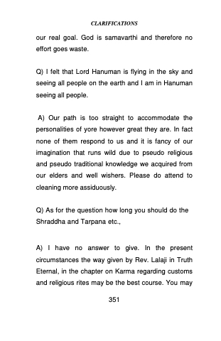 A) I have no answer to give. In the present circumstances the way given by Rev. Lalaji in Truth Eternal, in the chapter on Karma regarding customs and religious rites may be the best course. You may