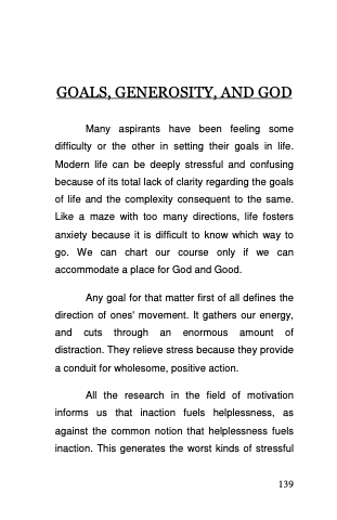 Many aspirants have been feeling some difficulty or the other in setting their goals in life. Modern life can be deeply stressful and confusing because of its total lack of clarity regarding the goals of life and the complexity consequent to the same. Like a maze with too many directions, life fosters anxiety because it is difficult to know which way to go. We can chart our course only if we can accommodate a place for God and Good.