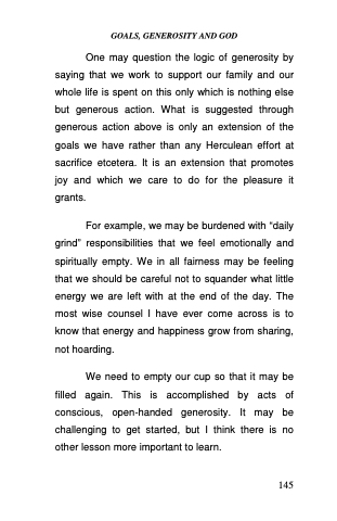 One may question the logic of generosity by saying that we work to support our family and our whole life is spent on this only which is nothing else but generous action. What is suggested through generous action above is only an extension of the goals we have rather than any Herculean effort at sacrifice etcetera. It is an extension that promotes joy and which we care to do for the pleasure it grants.