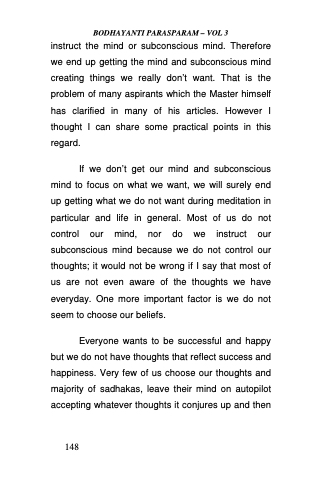 instruct the mind or subconscious mind. Therefore we end up getting the mind and subconscious mind creating things we really don’t want. That is the problem of many aspirants which the Master himself has clarified in many of his articles. However I thought I can share some practical points in this regard.