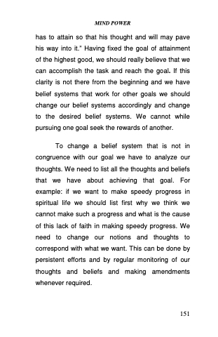 has to attain so that his thought and will may pave his way into it.” Having fixed the goal of attainment of the highest good, we should really believe that we can accomplish the task and reach the goal. If this clarity is not there from the beginning and we have belief systems that work for other goals we should change our belief systems accordingly and change to the desired belief systems. We cannot while pursuing one goal seek the rewards of another.