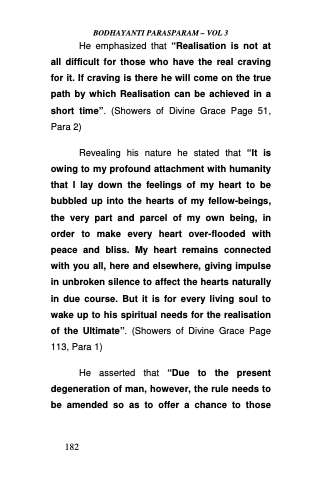 He emphasized that “Realisation is not at all difficult for those who have the real craving for it. If craving is there he will come on the true path by which Realisation can be achieved in a short time”. (Showers of Divine Grace Page 51, Para 2)