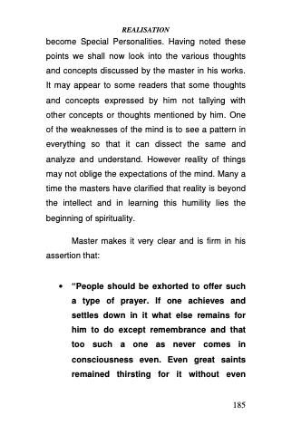 become Special Personalities. Having noted these points we shall now look into the various thoughts and concepts discussed by the master in his works. It may appear to some readers that some thoughts and concepts expressed by him not tallying with other concepts or thoughts mentioned by him. One of the weaknesses of the mind is to see a pattern in everything so that it can dissect the same and analyze and understand. However reality of things may not oblige the expectations of the mind. Many a time the masters have clarified that reality is beyond the intellect and in learning this humility lies the beginning of spirituality.