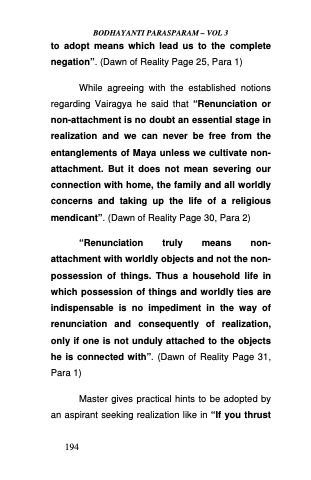 While agreeing with the established notions regarding Vairagya he said that “Renunciation or non-attachment is no doubt an essential stage in realization and we can never be free from the entanglements of Maya unless we cultivate non- attachment. But it does not mean severing our connection with home, the family and all worldly concerns and taking up the life of a religious mendicant”. (Dawn of Reality Page 30, Para 2)