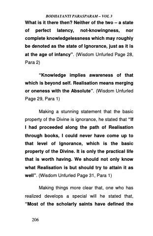 Making a stunning statement that the basic property of the Divine is ignorance, he stated that “If I had proceeded along the path of Realisation through books, I could never have come up to that level of Ignorance, which is the basic property of the Divine. It is only the practical life that is worth having. We should not only know what Realisation is but should try to attain it as well”. (Wisdom Unfurled Page 31, Para 1)