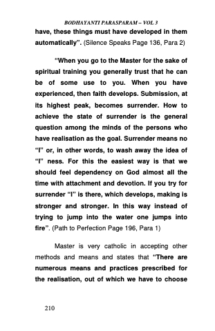 Master is very catholic in accepting other methods and means and states that “There are numerous means and practices prescribed for the realisation, out of which we have to choose