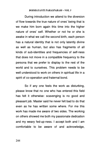 During introduction we attend to the diversion of flow towards the true nature of ones’ being that is we make him born again this time into the higher nature of ones’ self. Whether or not he or she is awake in what we call the second birth, each person has a natural identity that is not only latently divine as well as human, but also has fragments of all kinds of sub-identities and frequencies of self-ness that does not move in a compatible frequency to the persona that we prefer to display to the rest of the world and to ourselves. This problem needs to be well understood to work on others in spiritual life in a spirit of co-operation and fraternal bond.