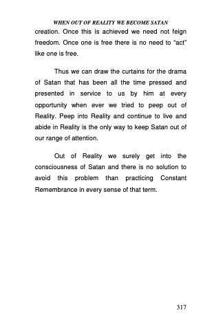 Out of Reality we surely get into the consciousness of Satan and there is no solution to avoid this problem than practicing Constant Remembrance in every sense of that term.