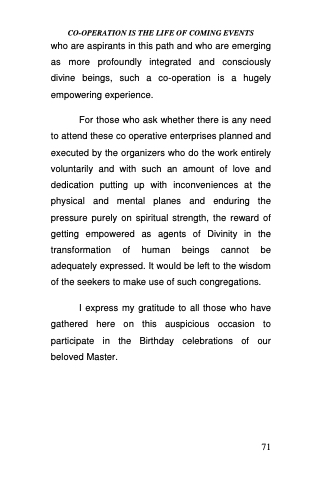 I express my gratitude to all those who have gathered here on this auspicious occasion to participate in the Birthday celebrations of our beloved Master.