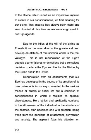 to the Divine, which is felt as an imperative impulse to evolve in our consciousness, we find meaning for our being. This impulse has always been there and was clouded all this time as we were engrossed in our Ego agenda.