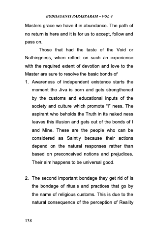 Those that had the taste of the Void or Nothingness, when reflect on such an experience with the required extent of devotion and love to the Master are sure to resolve the basic bonds of