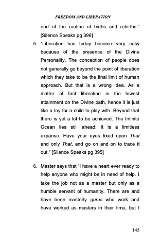because of the presence of the Divine Personality. The conception of people does not generally go beyond the point of liberation which they take to be the final limit of human approach. But that is a wrong idea. As a matter of fact liberation is the lowest attainment on the Divine path, hence it is just like a toy for a child to play with. Beyond that there is yet a lot to be achieved. The Infinite Ocean lies still ahead. It is a limitless expanse. Have your eyes fixed upon That and only That, and go on and on to trace it out.‖ [Silence Speaks pg 395]