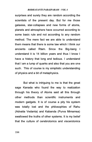 But what is intriguing to me is that the great sage Kanada who found the way to realization through his theory of Atoms said all this through other methods than scientific instruments and modern gadgets. It is of course a pity his system was totally lost and the philosophies of Rahu (Advaita Vedanta) and Kabanda (Purva Mimamsa) swallowed the truths of other systems. It is my belief that the culture of cerebrotonics and viscerotonics