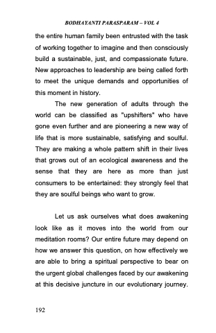 Let us ask ourselves what does awakening look like as it moves into the world from our meditation rooms? Our entire future may depend on how we answer this question, on how effectively we are able to bring a spiritual perspective to bear on the urgent global challenges faced by our awakening at this decisive juncture in our evolutionary journey.