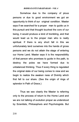 Thus we see clearly the Master is referring only to the process of return to the Home Land and we are not talking of evolution proper as understood by Scientists, Philosophers and Psychologists. But
