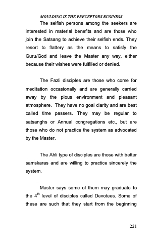The selfish persons among the seekers are interested in material benefits and are those who join the Satsang to achieve their selfish ends. They resort to flattery as the means to satisfy the Guru/God and leave the Master any way, either because their wishes were fulfilled or denied.