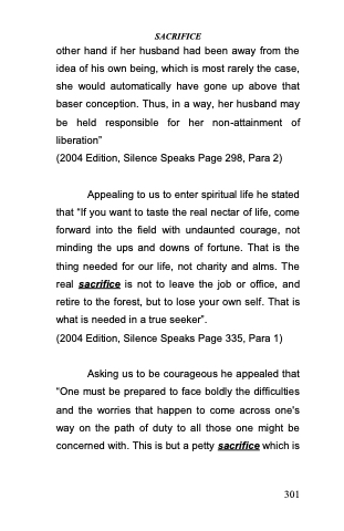 other hand if her husband had been away from the idea of his own being, which is most rarely the case, she would automatically have gone up above that baser conception. Thus, in a way, her husband may be held responsible for her non-attainment of liberation‖