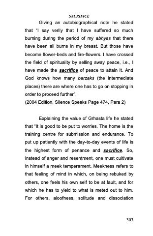 Giving an autobiographical note he stated that ―I say verily that I have suffered so much burning during the period of my abhyas that there have been all burns in my breast. But those have become flower-beds and fire-flowers. I have crossed the field of spirituality by selling away peace, i.e., I have made the sacrifice of peace to attain it. And God knows how many barzaks (the intermediate places) there are where one has to go on stopping in order to proceed further‖.