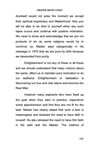 drunkard would not arise the moment we accept their spiritual supremacy and Masterhood. Also you will be able to be kind to yourself when any such lapse occurs and continue with positive motivation. We need to know and acknowledge that we are not products of sin as some religions would try to convince us. Master says categorically in his message in 1970 that we are pure by birth because we descended from purity.