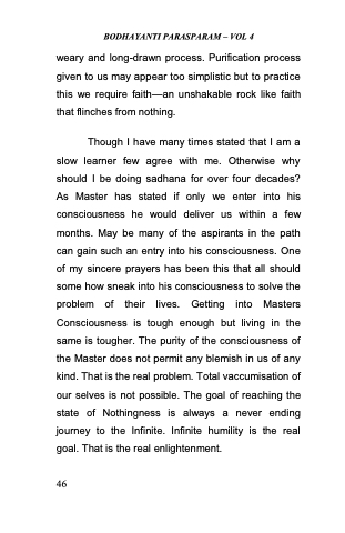 weary and long-drawn process. Purification process given to us may appear too simplistic but to practice this we require faith—an unshakable rock like faith that flinches from nothing.
