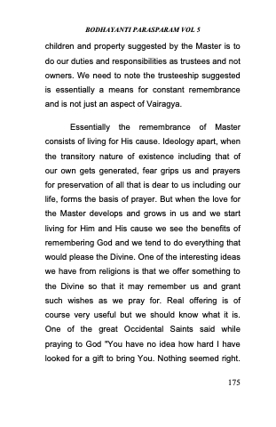 children and property suggested by the Master is to do our duties and responsibilities as trustees and not owners. We need to note the trusteeship suggested is essentially a means for constant remembrance and is not just an aspect of Vairagya.