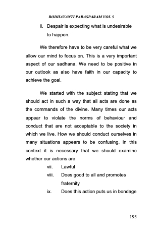 We therefore have to be very careful what we allow our mind to focus on. This is a very important aspect of our sadhana. We need to be positive in our outlook as also have faith in our capacity to achieve the goal.