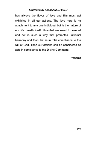 has always the flavor of love and this must get exhibited in all our actions. The love here is no attachment to any one individual but is the nature of our life breath itself. Unsoiled we need to love all and act in such a way that promotes universal harmony and then that is in total compliance to the will of God. Then our actions can be considered as acts in compliance to the Divine Command.