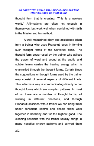 thought form that is creating, "This is a useless world.‖ Affirmations are often not enough in themselves, but work well when combined with faith in the Master and his method.