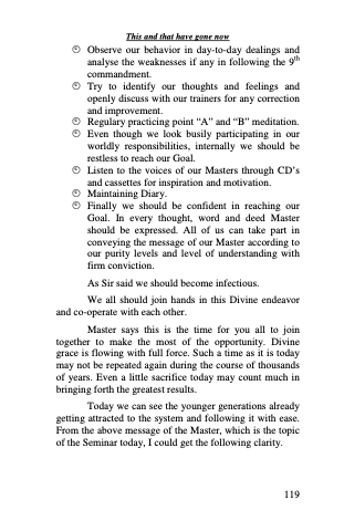 Today we can see the younger generations already getting attracted to the system and following it with ease. From the above message of the Master, which is the topic of the Seminar today, I could get the following clarity.