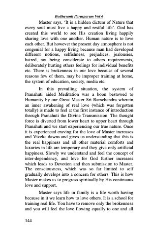 Master says life in family is a life worth having because in it we learn how to love others. It is a school for training real life. You have to remove only the brokenness and you will feel the love flowing equally to one and all