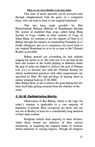 Observation of Rev.Babuji, which is the topic for today’s seminar is applicable to a vast majority of humanity at present. Rare exceptions are those who are not out of Reality at least for a considerably long duration of their daily routine.