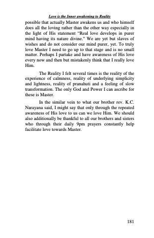 possible that actually Master awakens us and who himself does all the loving rather than the other way especially in the light of His statement “Real love develops in purer mind having its nature divine.” We are yet but slaves of wishes and do not consider our mind purer, yet. To truly love Master I need to go up to that stage and is no small matter. Perhaps I partake and have awareness of His love every now and then but mistakenly think that I really love Him.