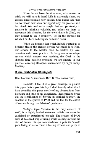 Namaste. I feel it is a great privilege to present this paper before you this day. I shall frankly admit that I have compiled this paper mostly of my observations from literature and little of my experience. I have tried to bring out the significance of Service in spiritual journey, the enablers in the system of PAM and the feel for the extent of service through our Masters’ quotations.