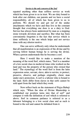 Now reflect back on the statement of Pujya Babuji which says, “When the idea of Divine Mastership is established our position turns into that of serf” and compare it with the definition of serf which is referred to above. Serf in common parlance is referred to as a labourer belonging to a low social class and as such is bound to the soil and cannot be delinked from it.