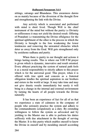 It has been an experience of fact for all of us that we experience a state of calmness in the company of people who seriously practice the system and adhere to the commandments scrupulously as a duty. By extending willingness to follow the system as advocated and by yielding to the Master one is able to perform his duties selflessly with due attachment in the thought of serving the Master. It is this purity which enables oneself to know the Divine in oneself and by moulding oneself according